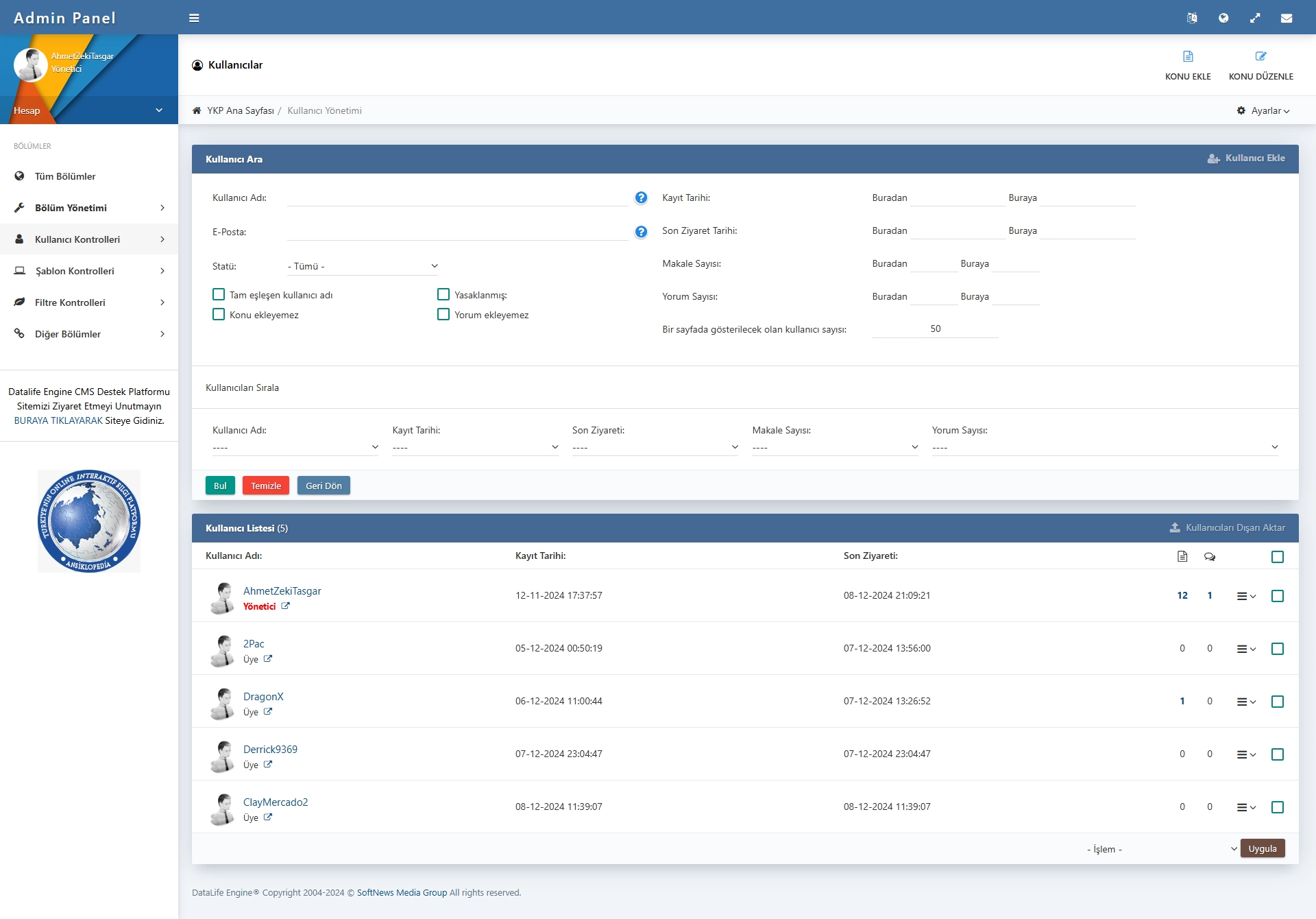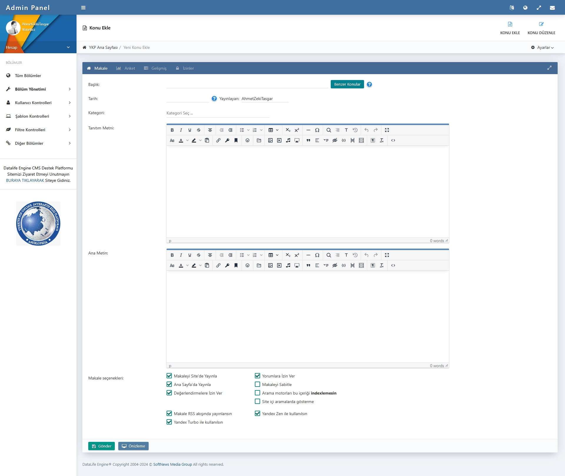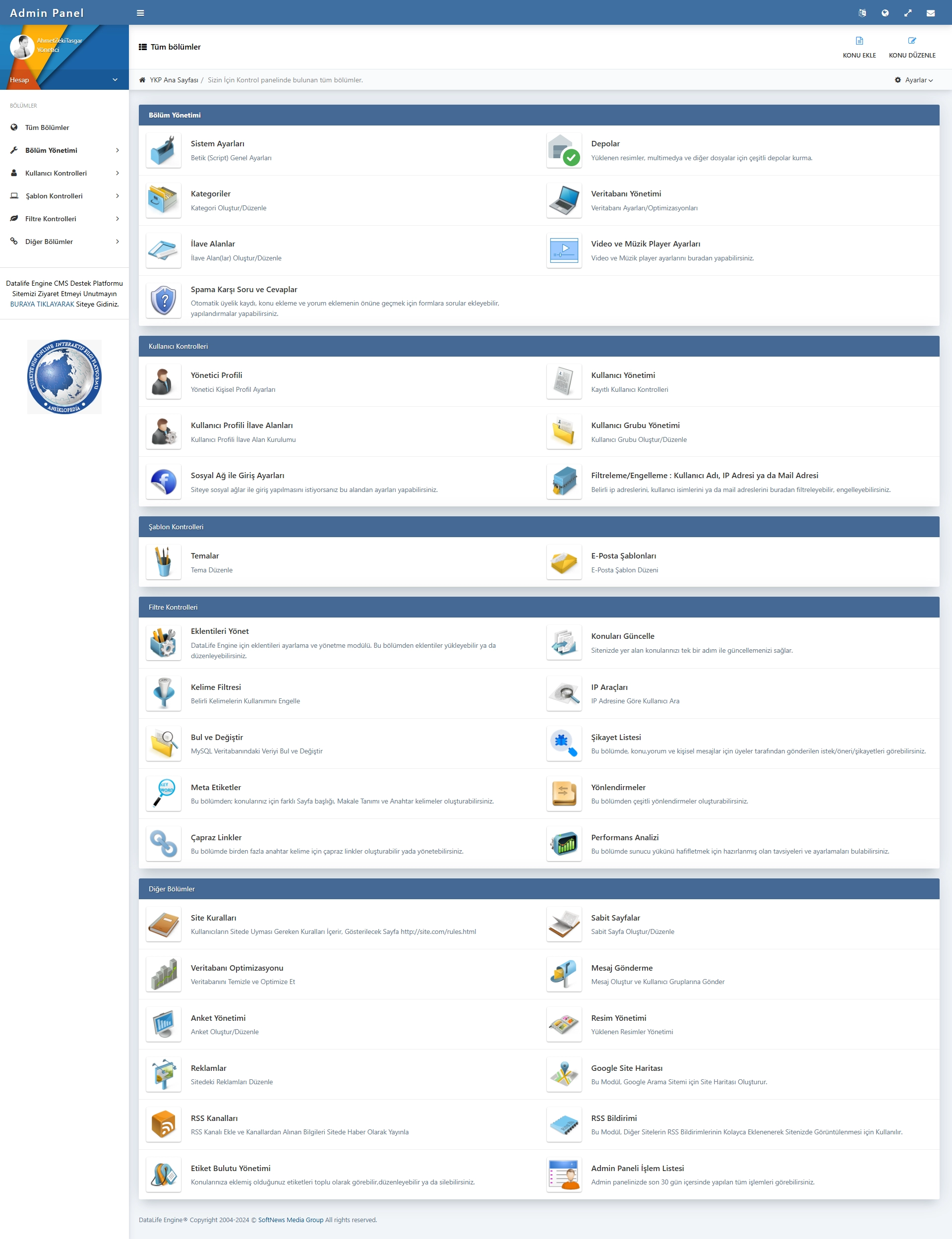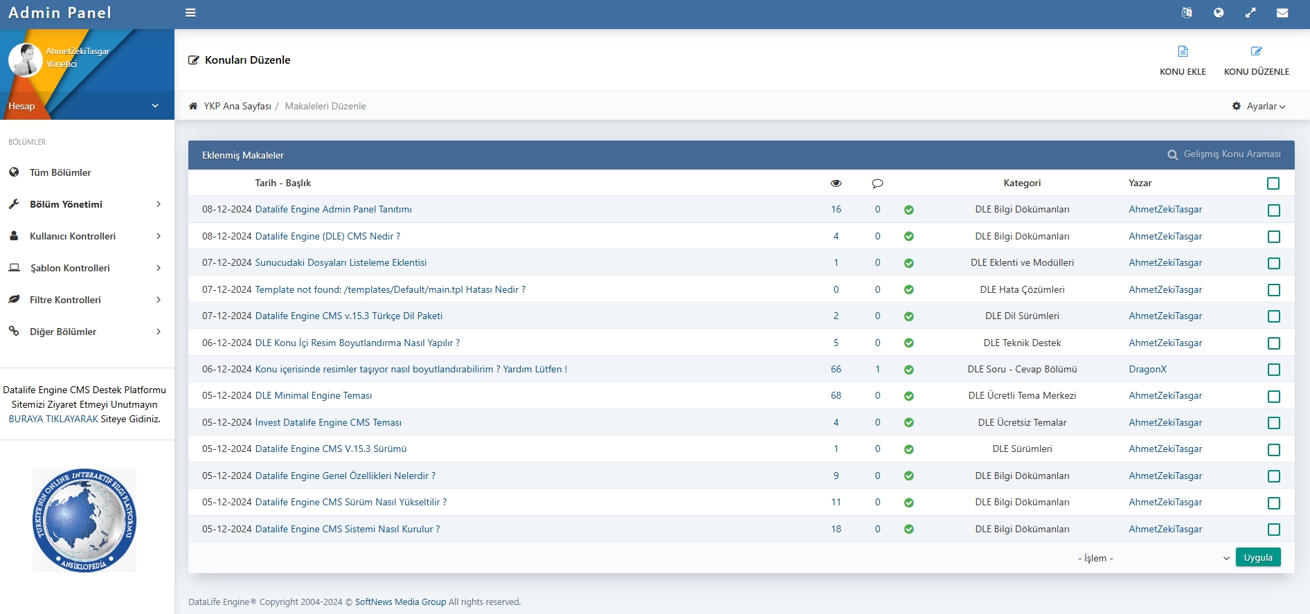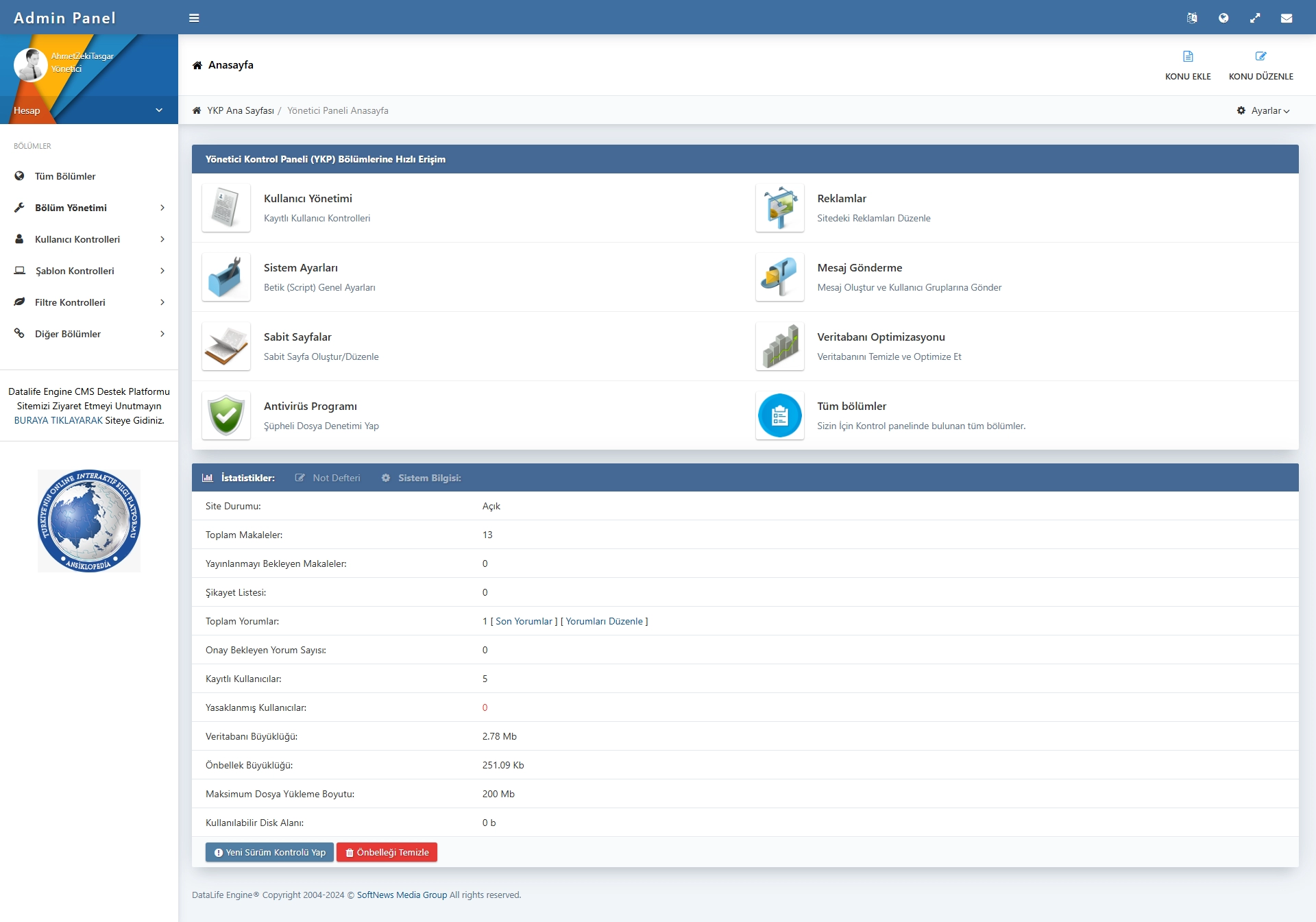 DLE Hakkında merak ettiklerinizden bir tanesi admin paneli nasıldır ? Ne gibi özellikleri mevcut hepsini sizlere göstereceğim. Tüm alanları detaylıca göstermedim. Siz kullanırsanız detaylıca incelersiniz.