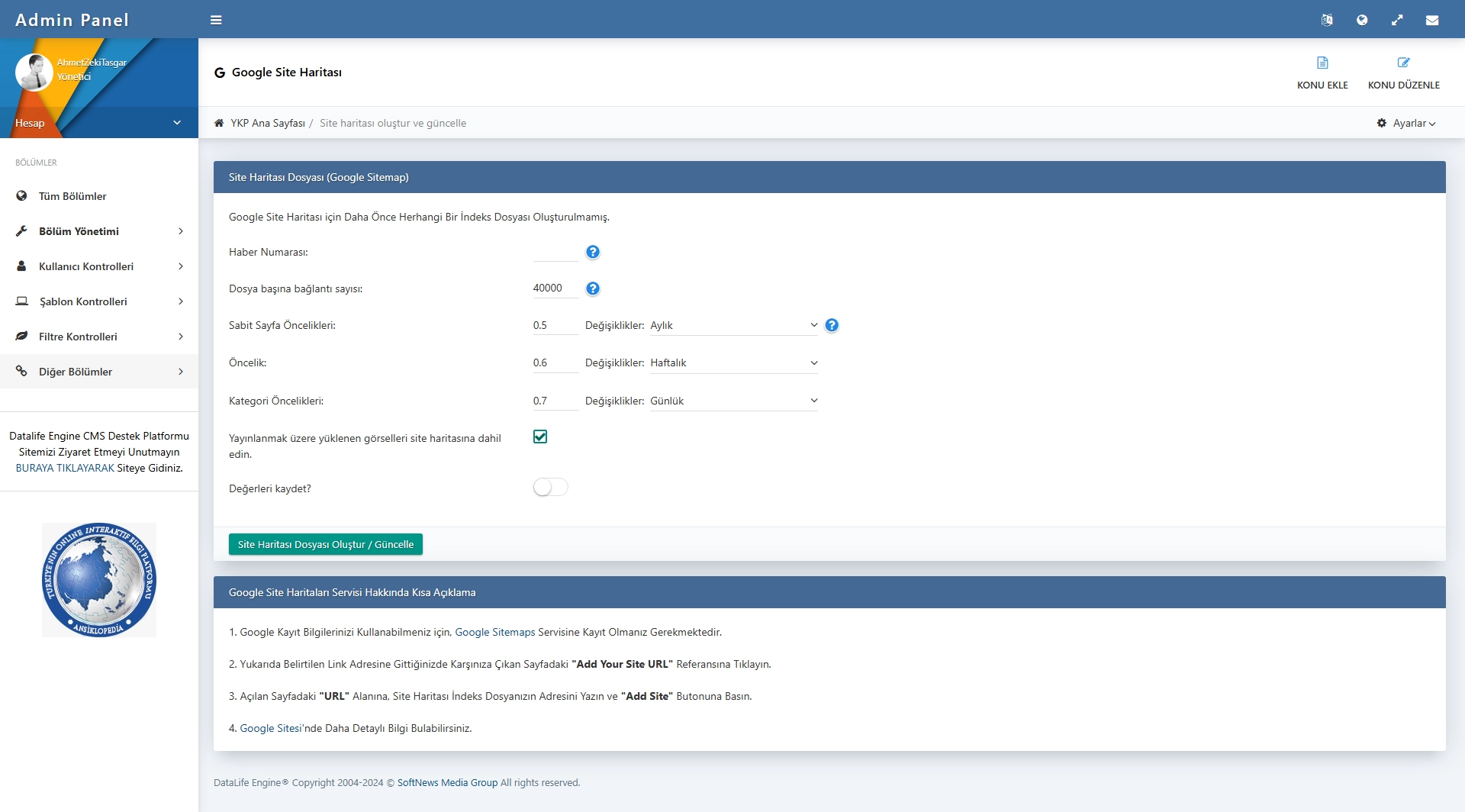 - 23 ) Diğer Bölümler > Site Haritaları (Sitemap)