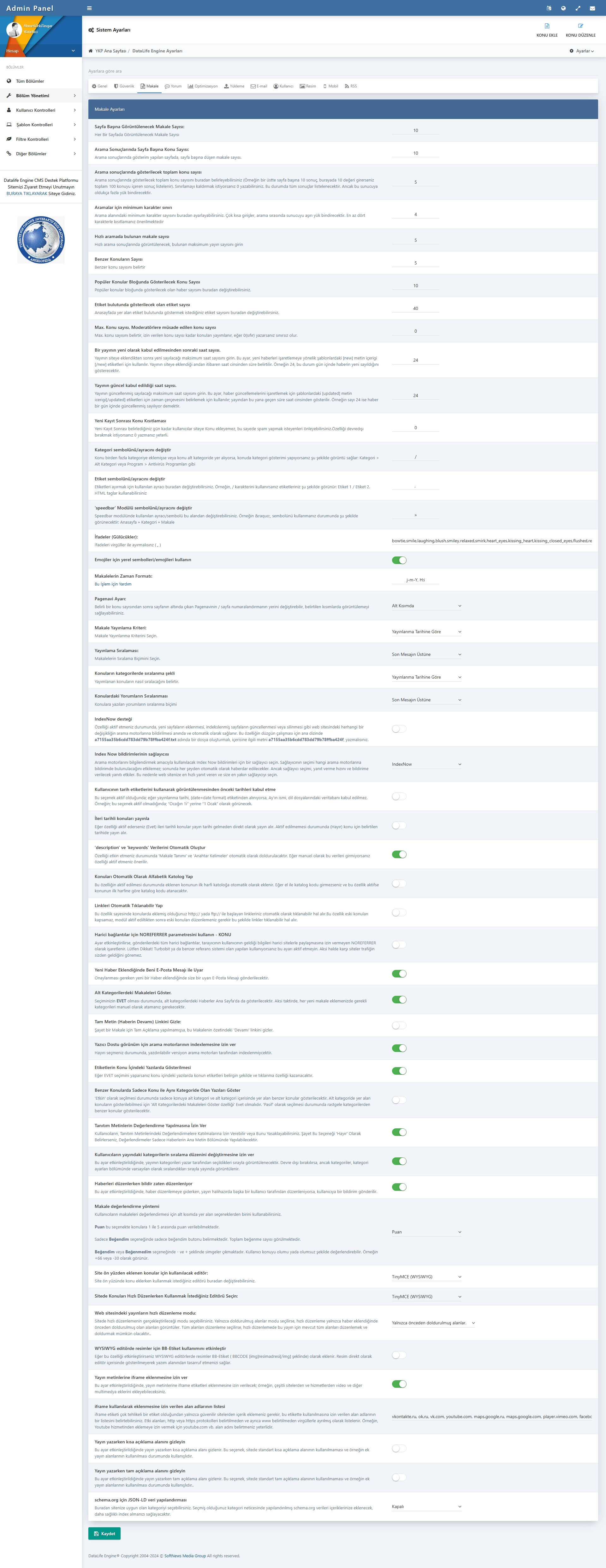 6 ) Bölüm Yönetimi > Sistem Ayarları > Makale Ayarları