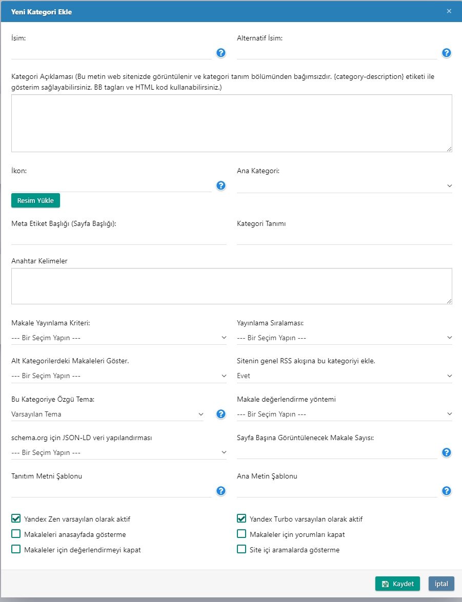 - 15 ) Bölüm Yönetimi > Kategoriler