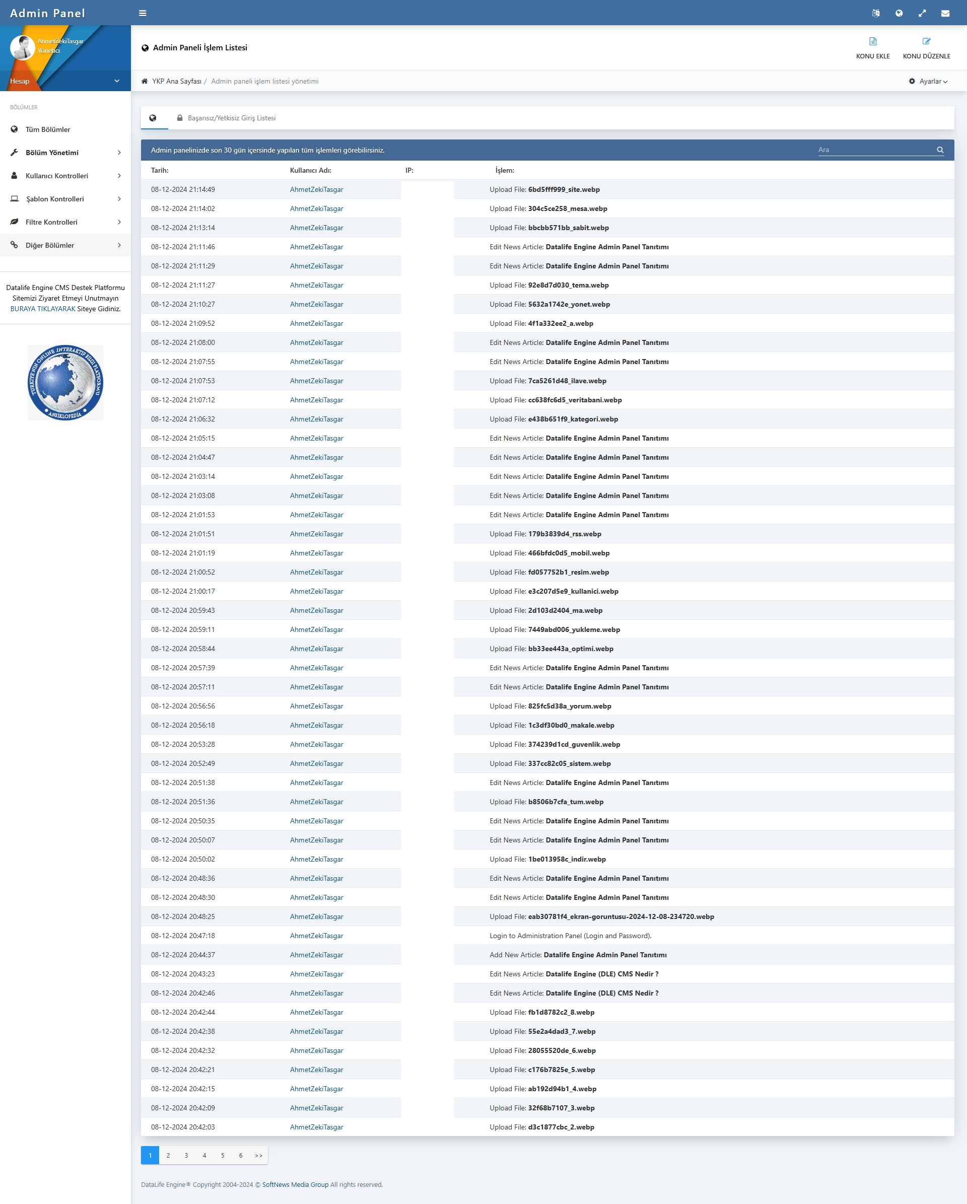 - 24 ) Diğer Bölümler > Admin Panel İşlem Listesi