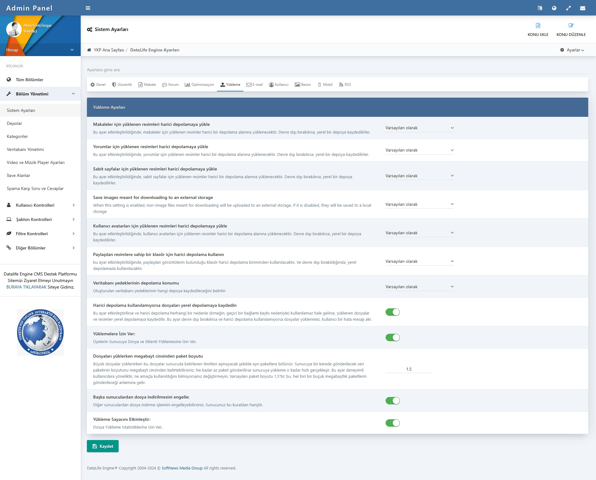 - 9 ) Bölüm Yönetimi > Sistem Ayarları > Yükleme Ayarları
