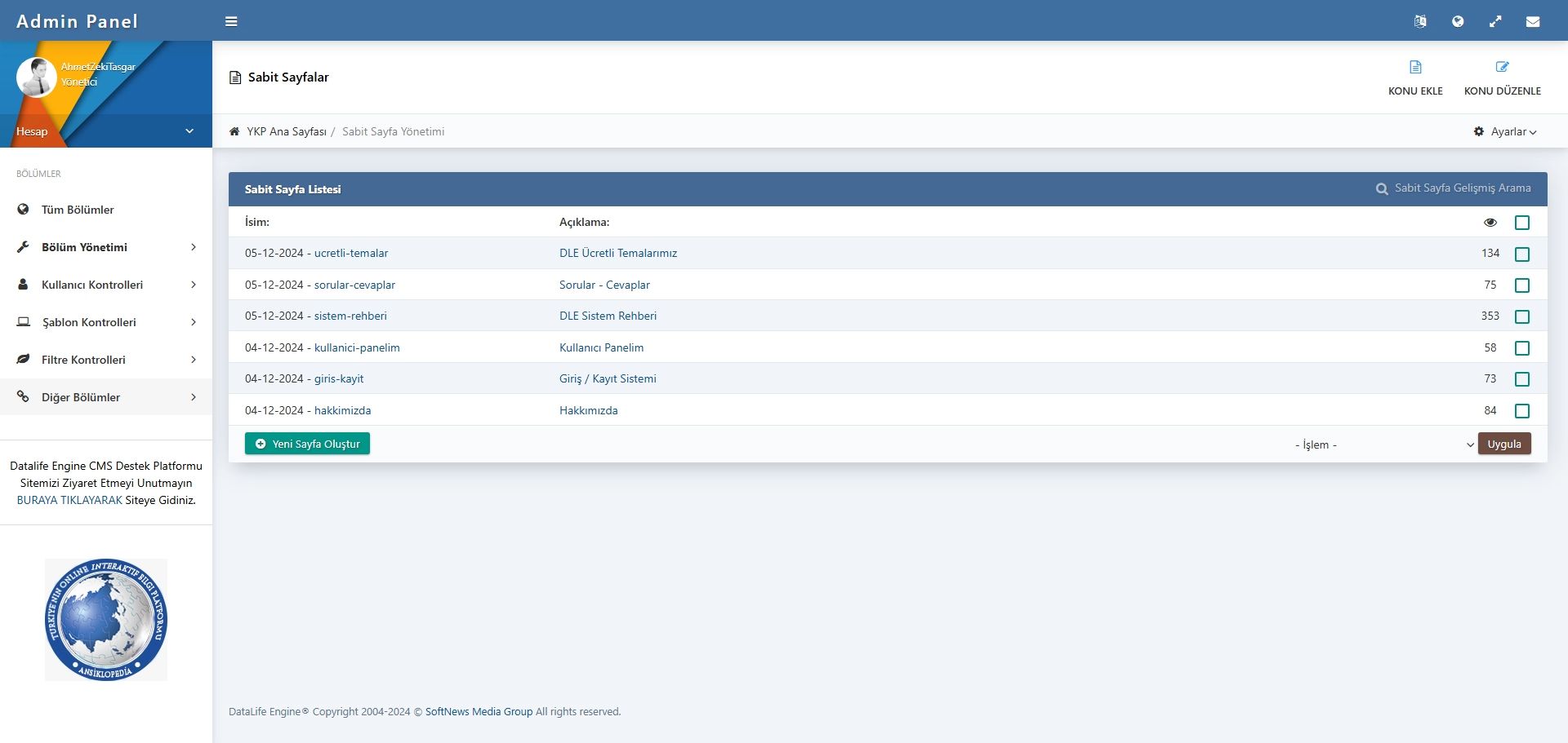 - 21 ) Diğer Bölümler > Sabit Sayfalar