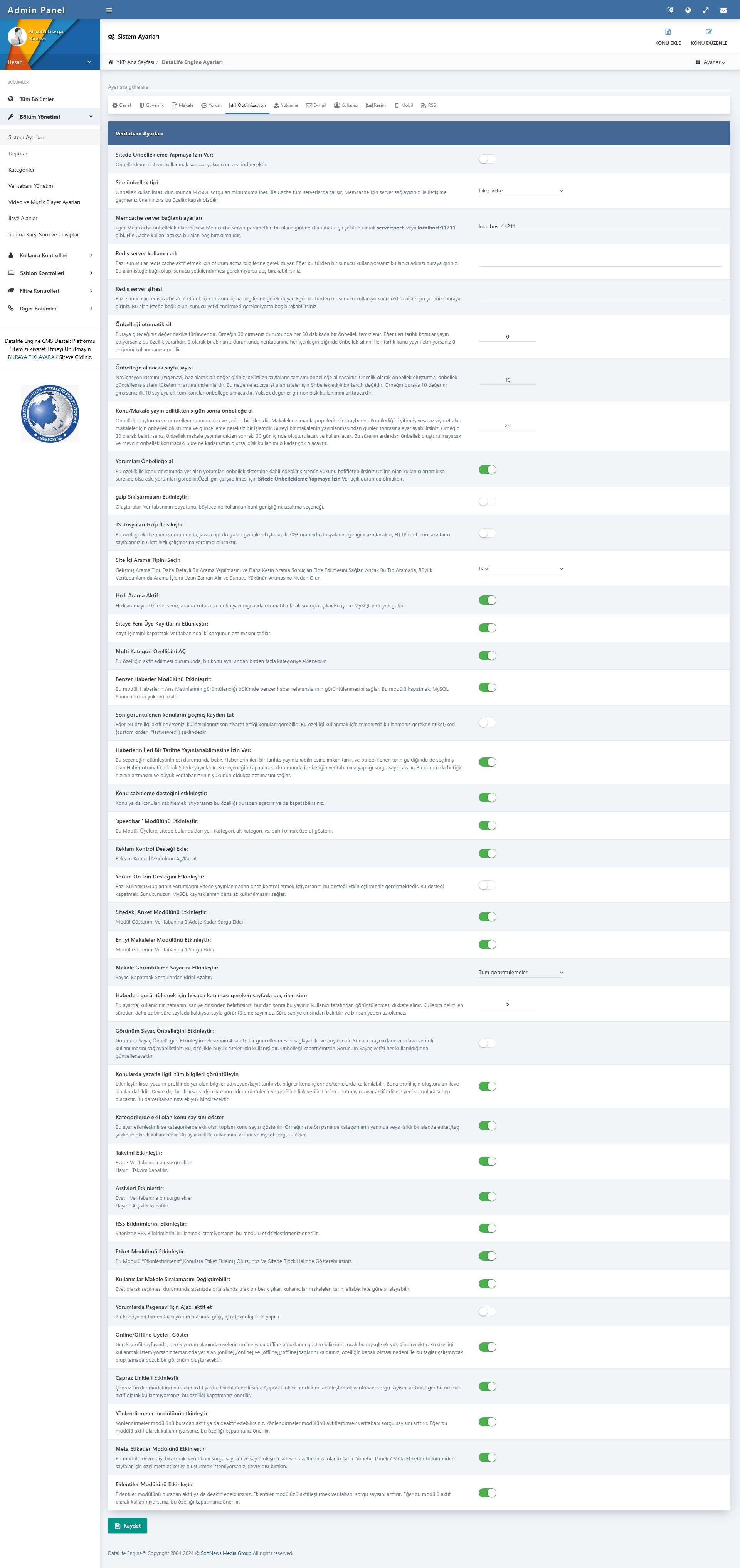 8 ) Bölüm Yönetimi > Sistem Ayarları > Optimizasyon Ayarları