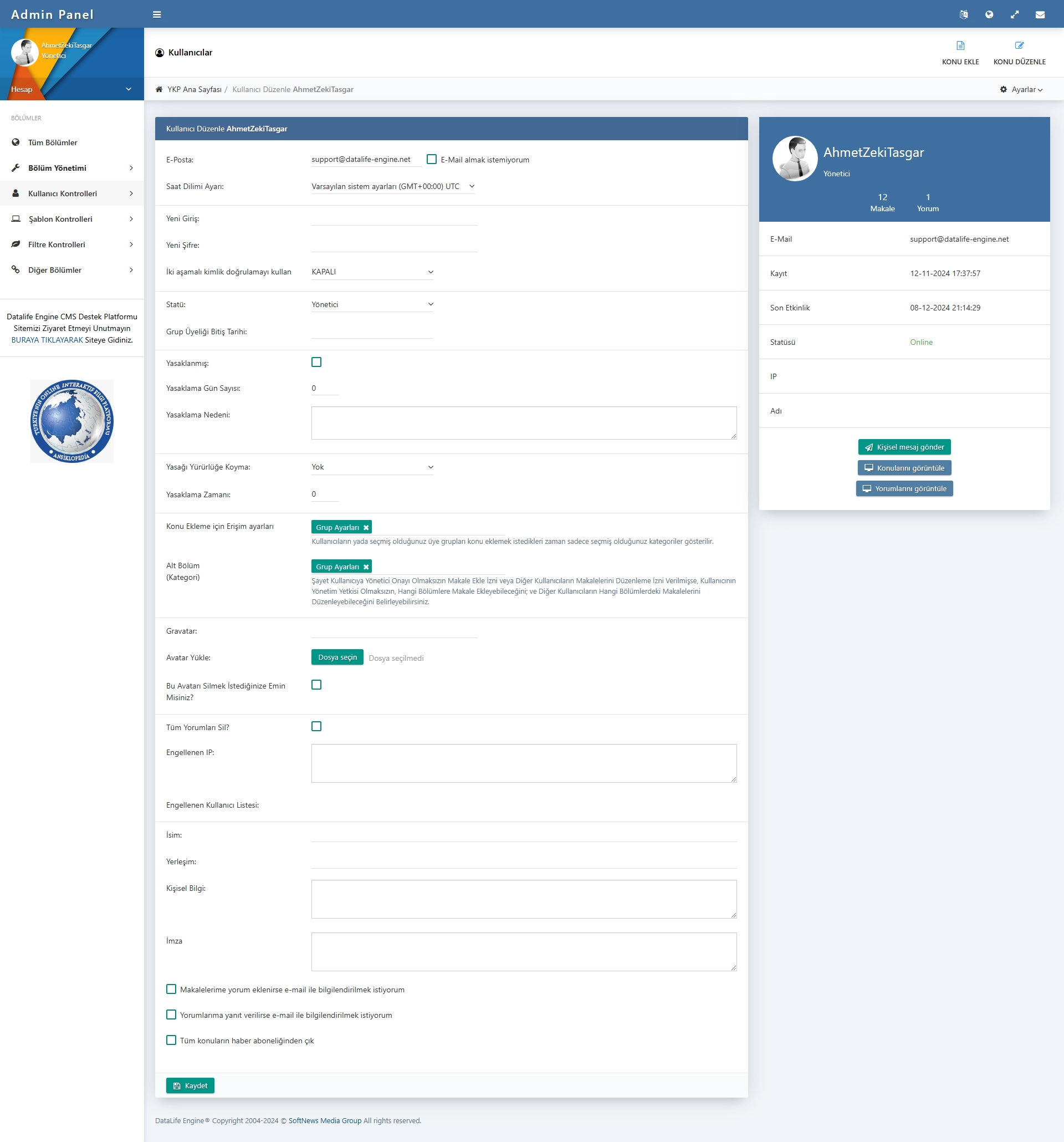 18 ) Kullanıcı Kontrolleri > Kullanıcı Yönetimi