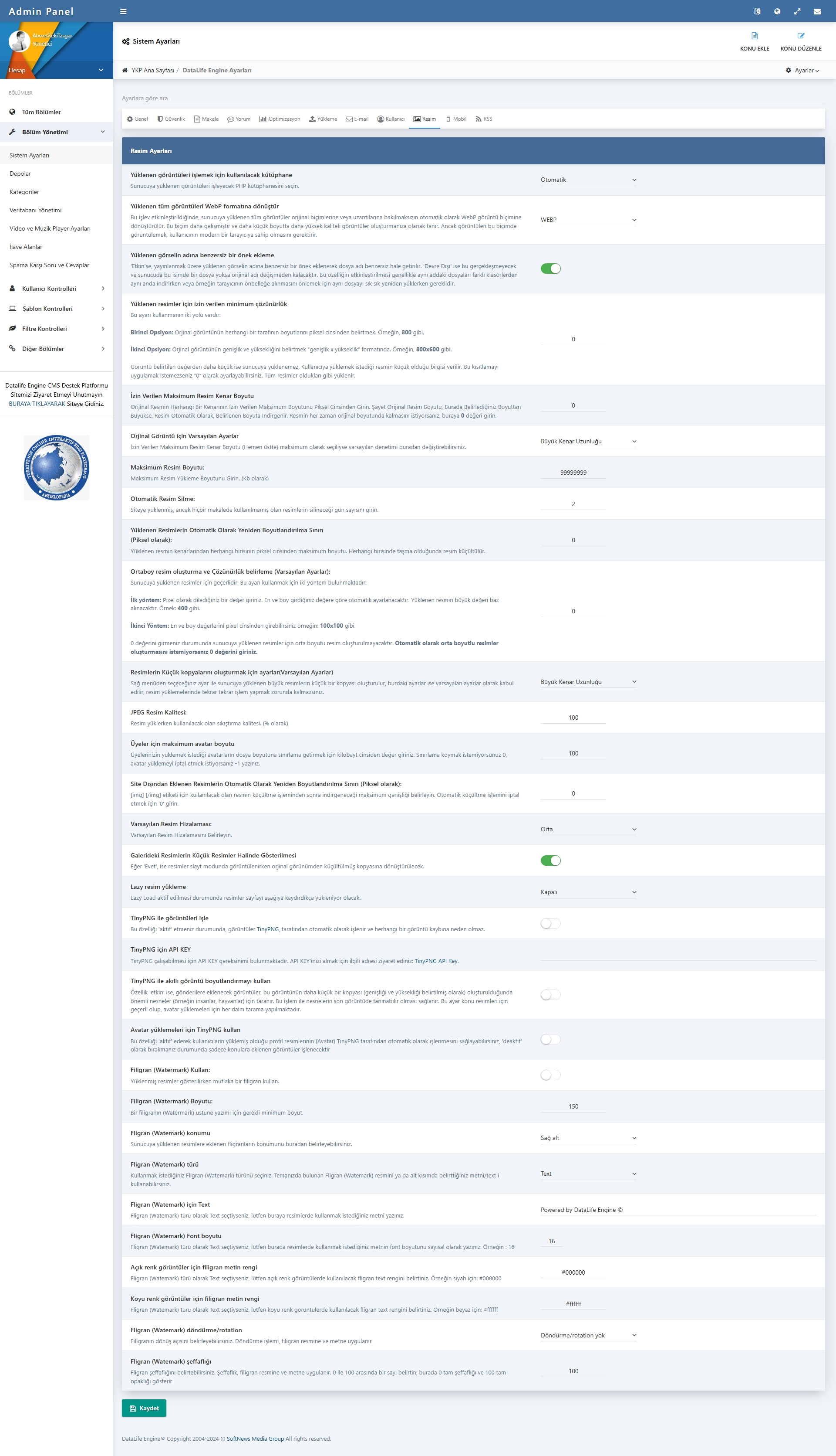 12 ) Bölüm Yönetimi > Sistem Ayarları > Resim Ayarları